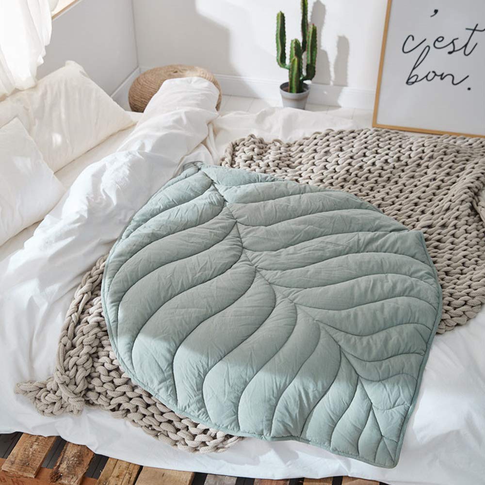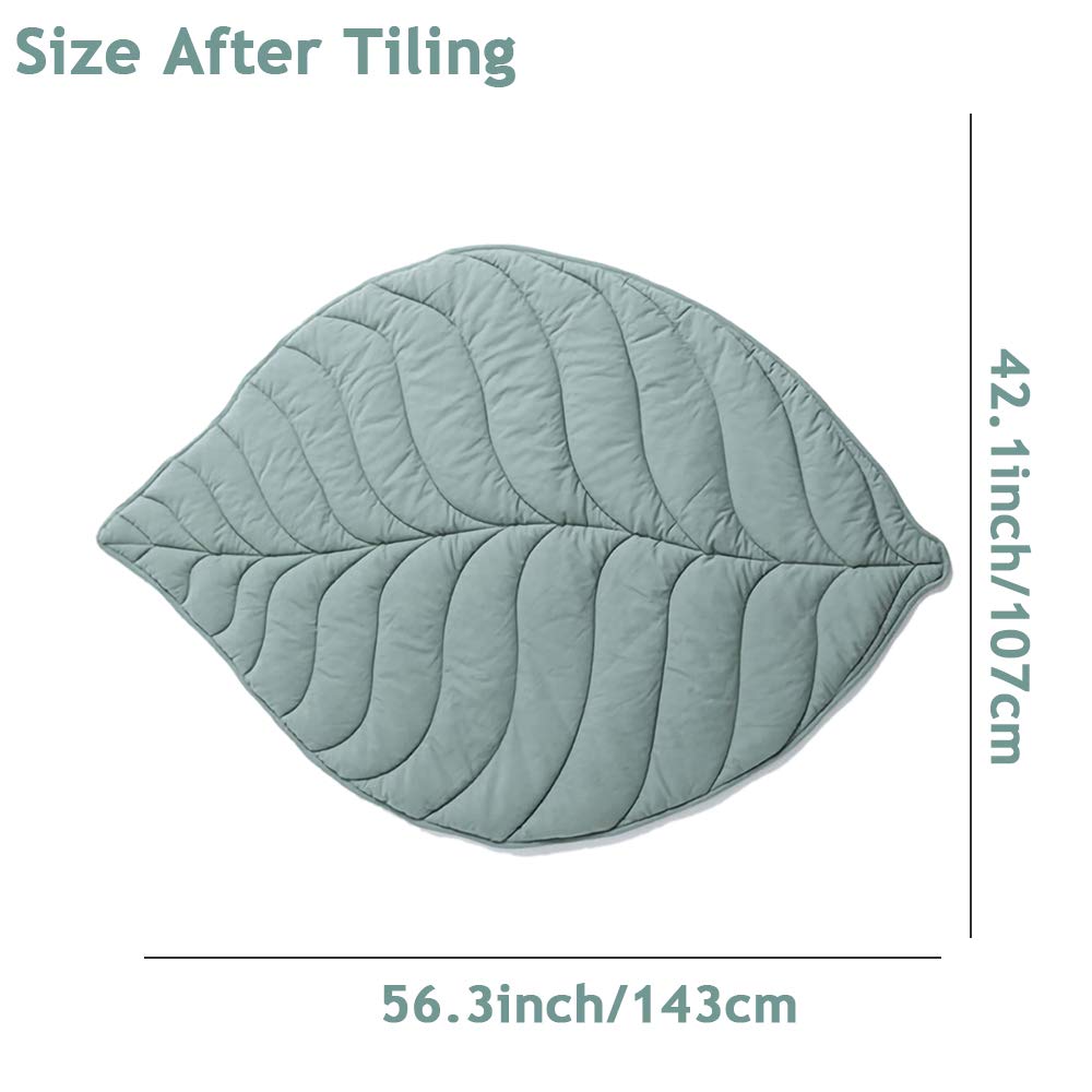 - Q: What are the dimensions of the play mat? A: The play mat comes in several sizes, including a green oak leaf measuring 56.3 inches by 42.1 inches, yellow maple leaf at 45.3 inches by 50 inches, pink eucalyptus leaf at 43.3 inches by 47.2 inches, and gray pine leaf at 48.4 inches by 38.6 inches.