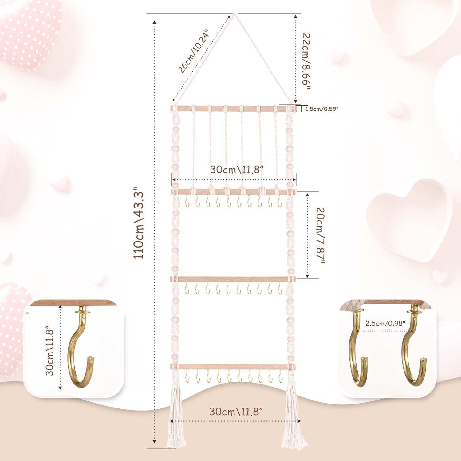 - Q: What features make this headband holder different from others? A: This holder features beech wood for better durability, metal hooks instead of plastic, and built-in holes for securing the structure.