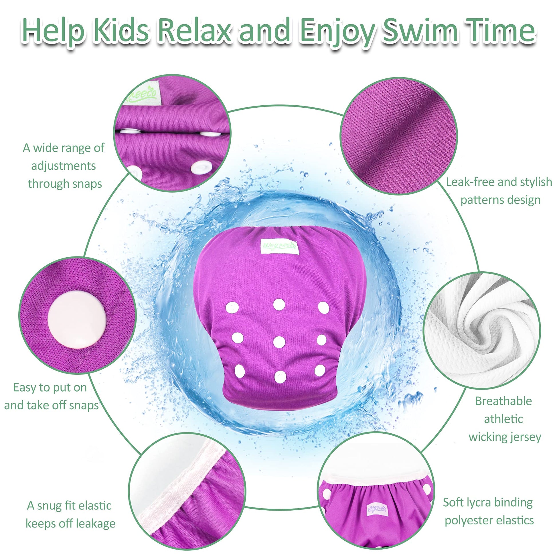 - Q: Are these swim diapers adjustable? A: Yes, the Wegreeco swim diapers feature adjustable snaps at the front and waist, allowing you to customize the fit as your baby grows.