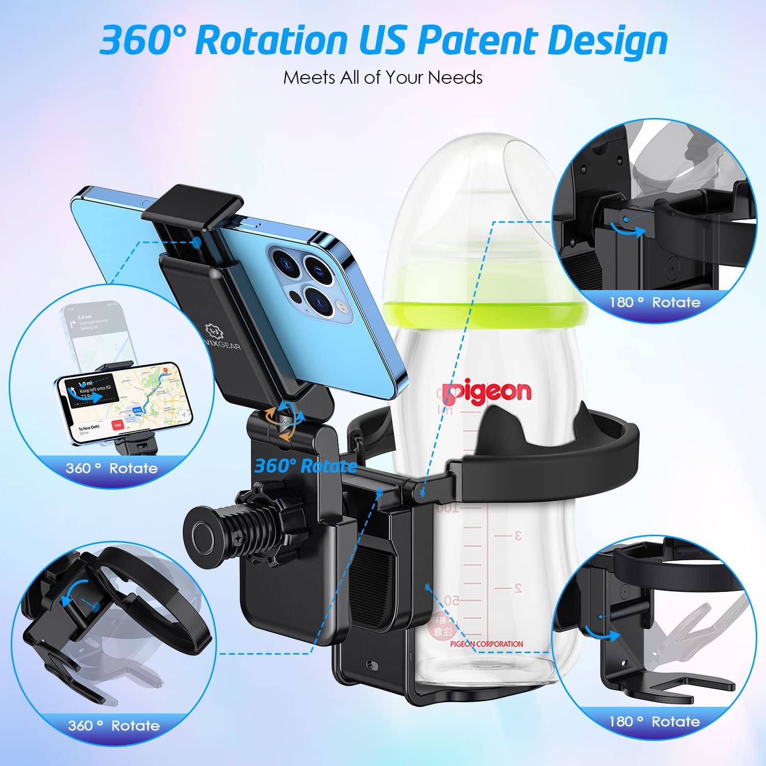 - Q: Can I use my phone while using the cup holder? A: Yes, the cup holder features a phone stand that allows you to use your phone for videos, FaceTime, or watching while strolling.