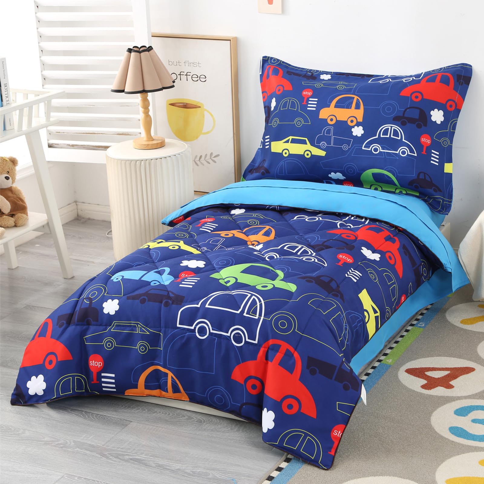 - Q: What design features does the bedding set include? A: The bedding set features a fun cars theme, combining different car designs to create a playful and engaging environment for toddlers.