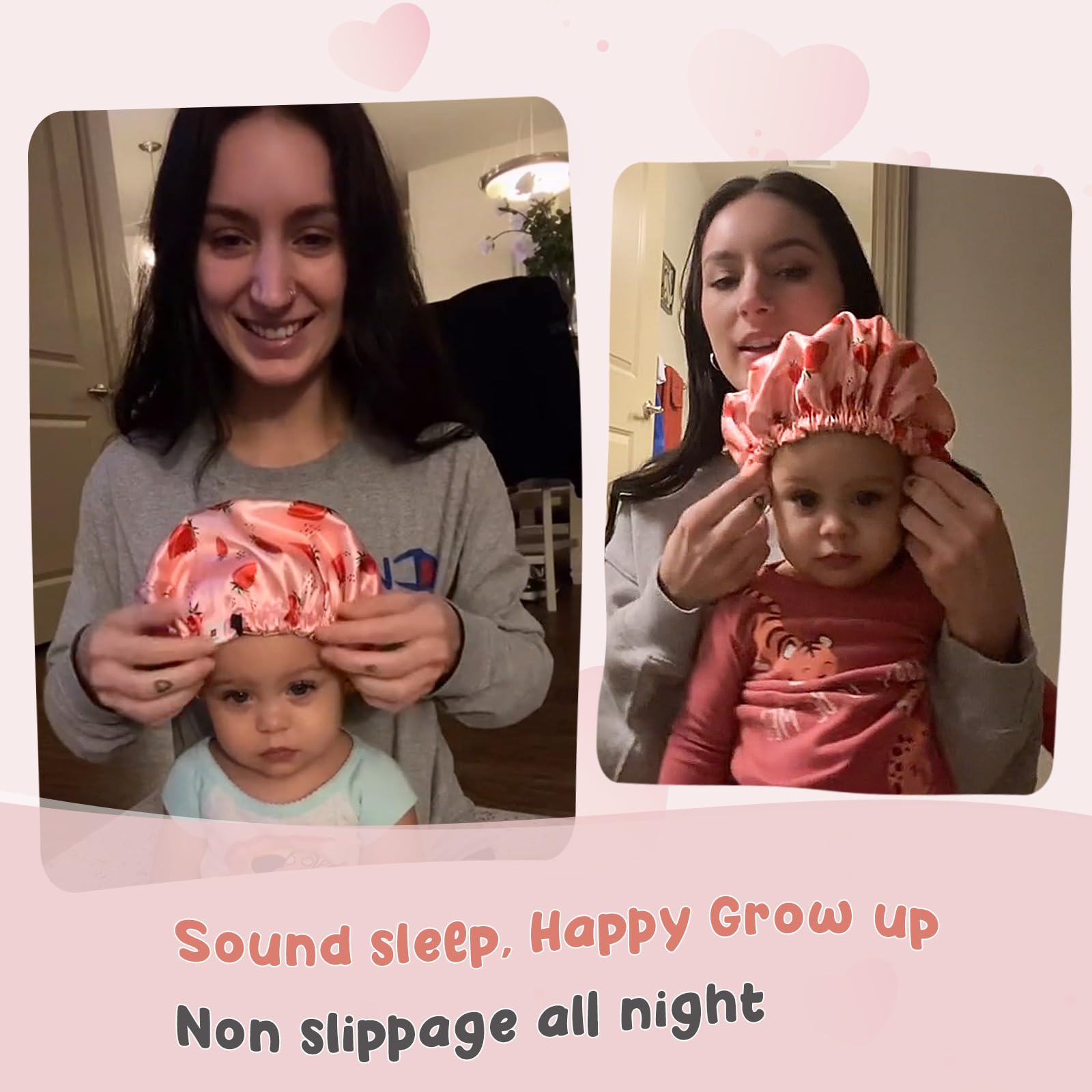 - Q: Does the satin material cause overheating during sleep? A: No, satin is breathable and helps regulate temperature, making it comfortable for your child to wear while sleeping.