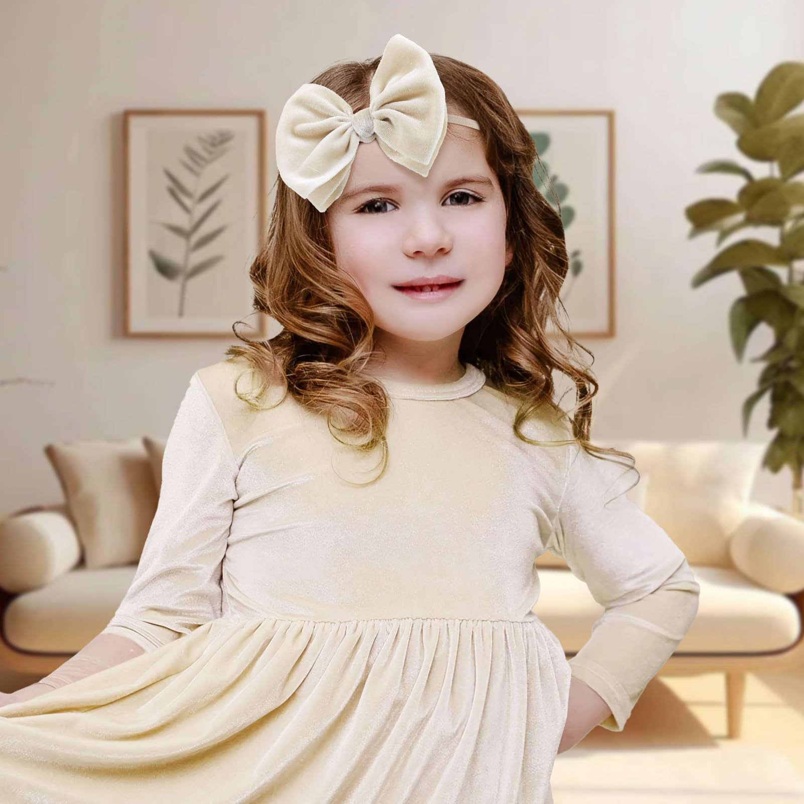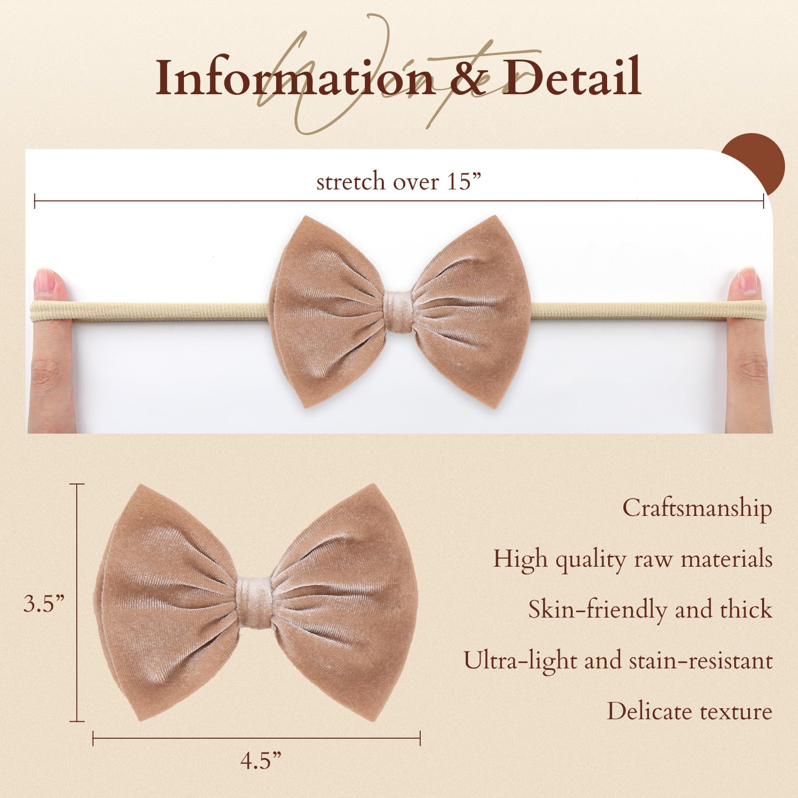 - Q: What is the size of the bow on the headband? A: The bow measures approximately 4.5 inches long and the headband is made of elastic nylon, which allows it to stretch comfortably.