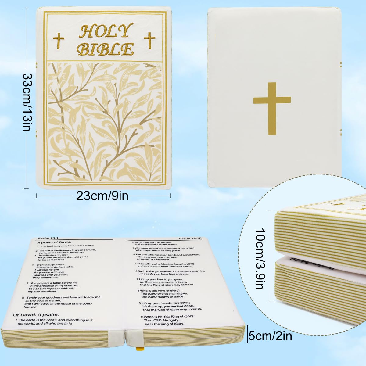 - Q: What is the purpose of the Yelakey Holy Bible Pillow? A: The pillow serves as both a decorative item and a plush toy, helping to instill Christian faith in a cozy, playful manner.