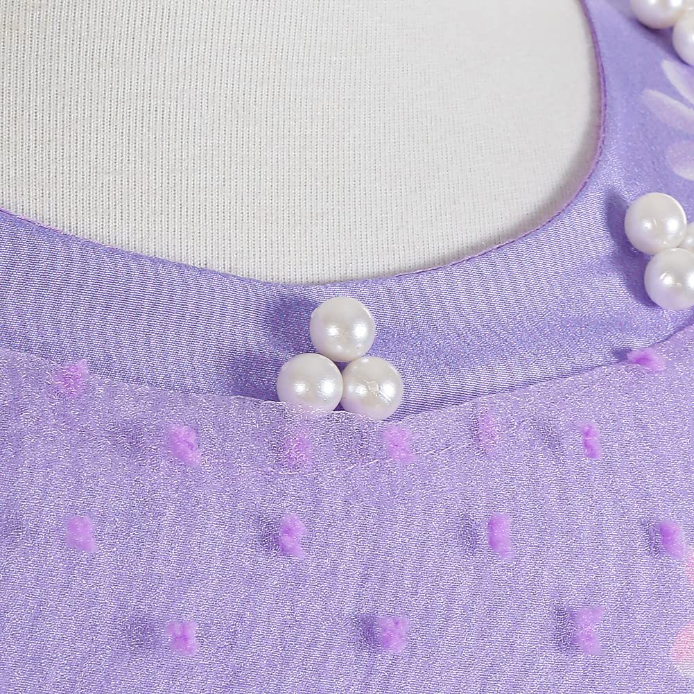 - Q: Does the costume have any specific design features? A: Yes, the Mirabel dress features a round neck, short sleeves, and a MIDI skirt, along with a vibrant print inspired by the popular Encanto film, showcasing a fashionable style.