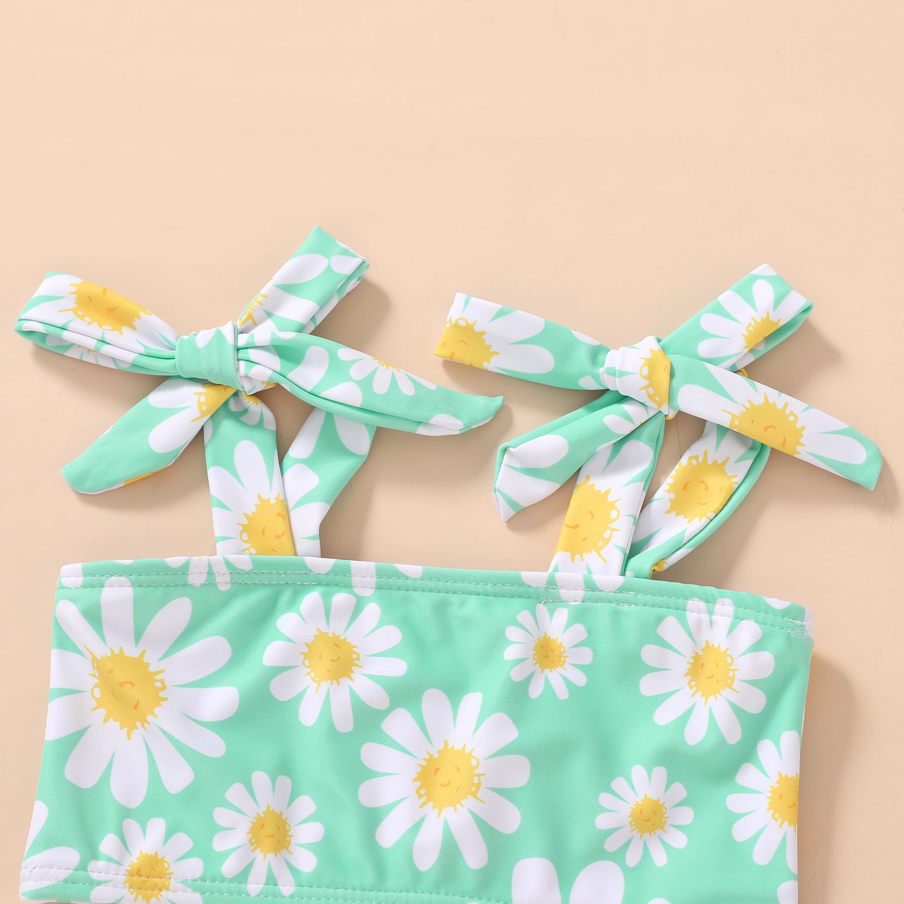 - Q: What sizes are available for this swimsuit? A: This toddler girls' swimsuit is available in sizes ranging from 18-24 months to 6-7T, including 2-3T, 3-4T, 4-5T, and 5-6T.