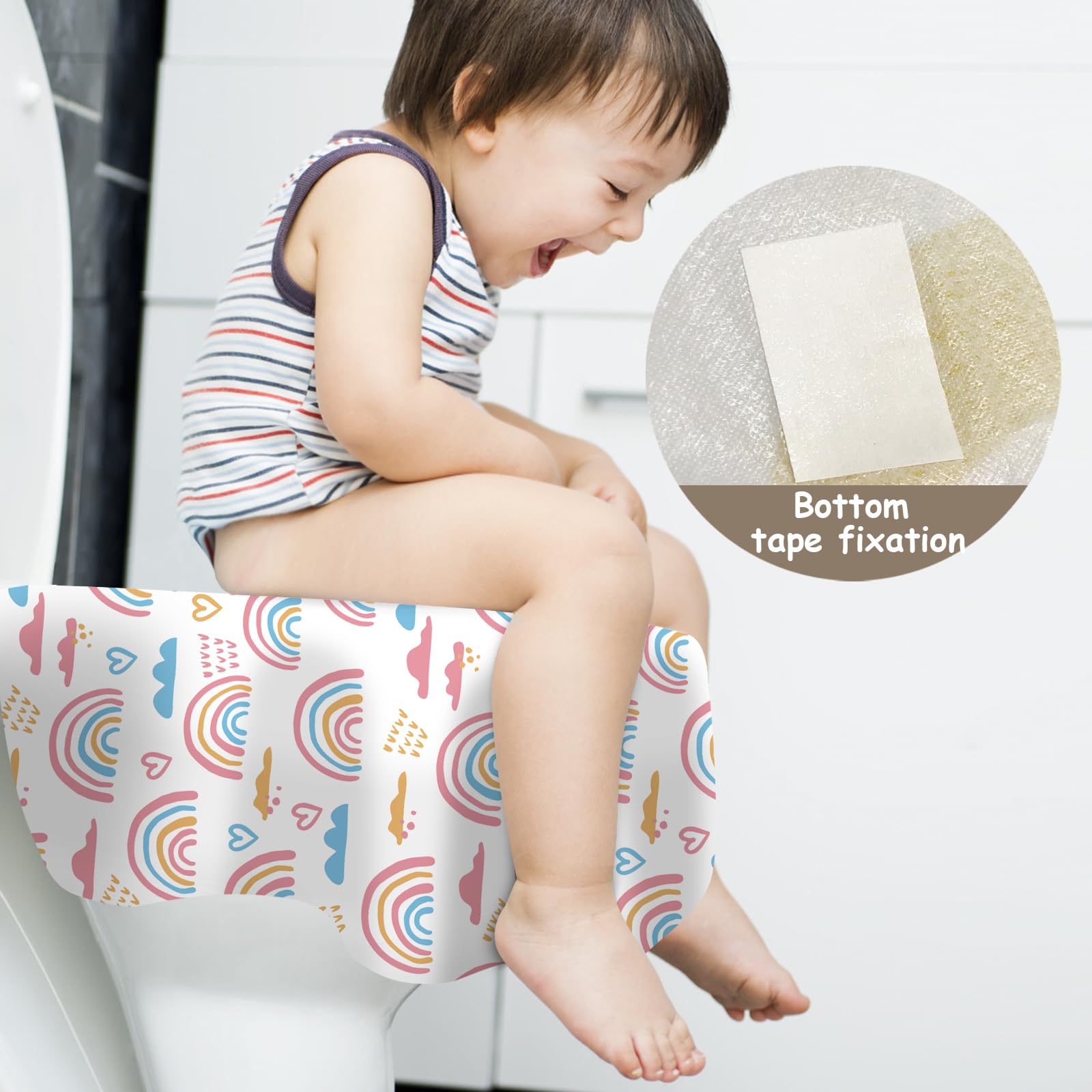 - Q: Do these toilet seat covers have a fun design? A: Yes, the ZHOMA toilet seat covers feature a cute rainbow pattern, making them appealing for both kids and adults.