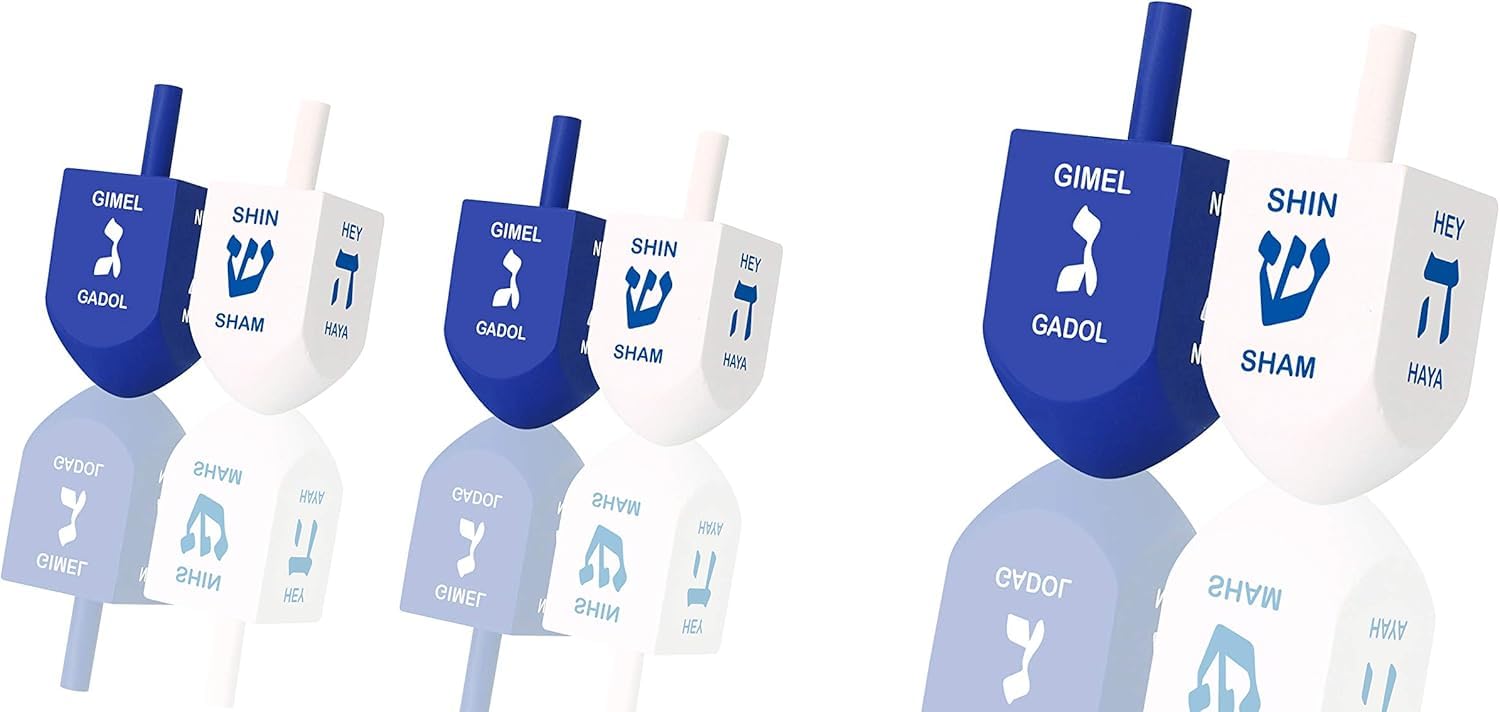 Zion Judaica Extra Large Hanukkah Wooden Dreidels In A Giftable Box 3' Blue & White Wood Dreidles With English Translation & Tr